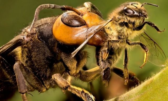Hornisse oder Tigerbiene. Diese Art lebt in Indien, China und Asien. Einzelpersonen sind sehr groß, die Länge des Körpers erreicht 5 cm, hat einen beeindruckenden Kiefer und einen Stich von 6 mm. Hornissen greifen in der Regel ohne besonderen Grund an. Mit Hilfe eines Stichs stechen sie leicht in die Haut. Niemand konnte ihnen bisher alleine entkommen. Während des Angriffs kann jeder Einzelne mehrmals Gift freisetzen, was zu starken Schmerzen führt. Jedes Jahr sterben 30-70 Menschen an Hornissenbissen.