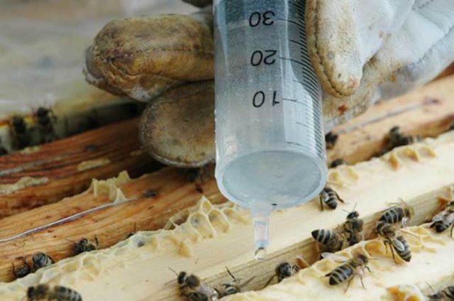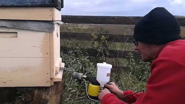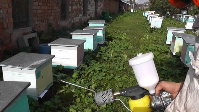- Wenn das Bienenhaus groß ist, machen Sie zwischen den Behandlungen eine 30-minütige Pause.