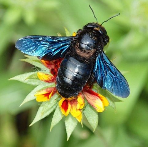 Die gemeine Zimmermannsbiene hat einen schwarzen Körper, lila Flügel. Es erhielt seinen ungewöhnlichen Namen wegen der Liebe, sich auf Dachböden, Bäumen und Holzpfosten niederzulassen. Insekten bilden keine großen Familien, unterscheiden sich nicht im aggressiven Verhalten gegenüber Menschen. Große, zottelige Beine ermöglichen es dem Insekt, große Mengen Pollen zu transportieren.