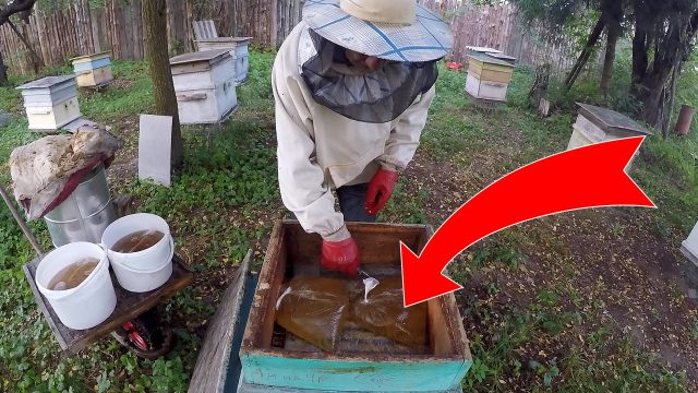 Die vorbereiteten Gemische werden in Feeder gegossen. Insekten werden abends gefüttert.Es ist notwendig, die Bewohner der Bienenstöcke im Sommer zu füttern, wenn aufgrund der starken Hitze nicht genügend Blütenpflanzen vorhanden sind.