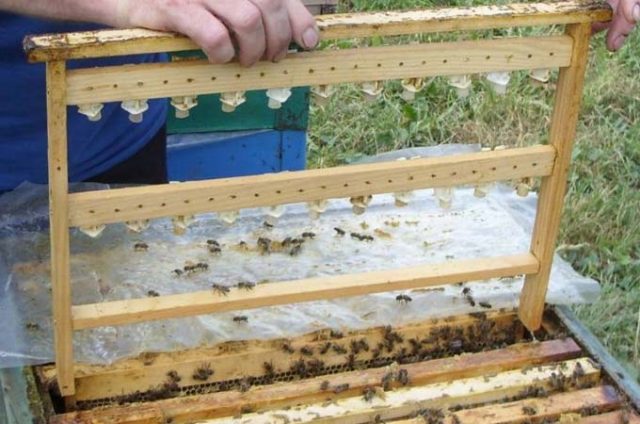 - Konstruktion Wabenrahmen werden zur Herstellung von Waben und Wachs verwendet. Die Ausrüstung hilft bei der Bekämpfung von Drohnen und Zecken. Im Frühjahr werden Drohnen an Wabenrahmen herausgenommen, um sich mit der Gebärmutter zu paaren.