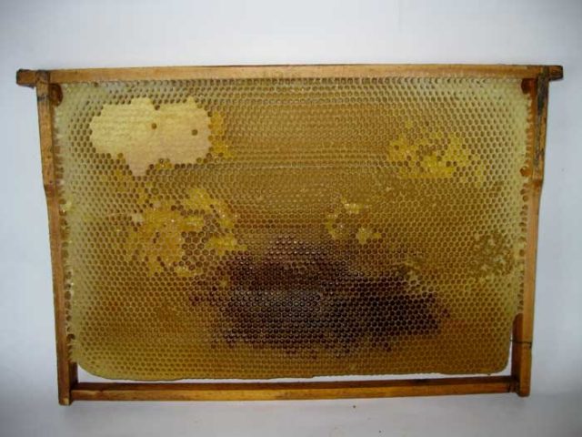 - die Königin führt eine gleichmäßige Aussaat der Zellen durch, die Brut nimmt zu;
