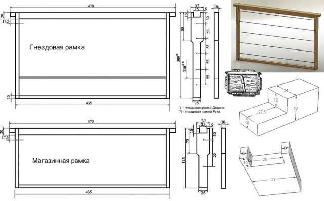 Wenn wir über Standards sprechen, sind die Abmessungen der Rahmen für Bienenstöcke wie folgt: