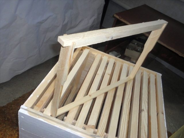 - Vorposten Der Rahmen wird oft als Platine bezeichnet. Es besteht aus einem Rahmen, der mit dünnen Streifen ummantelt ist. Installieren Sie das Außenpostenbrett im Bienenstock, um es warm zu halten. Imker machen auch Inventar aus Styropor oder umhüllen den Rahmen auf beiden Seiten mit Sperrholz und füllen den Innenraum mit Wärmedämmung.