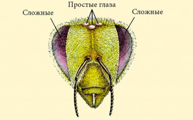 Mit Hilfe komplexer Augen können Insekten weit entfernte Objekte sehen, aufgrund derer sie sich während ihres Fluges im Weltraum orientieren. Einfache Augen ermöglichen die Bildung eines Bildes in unmittelbarer Nähe, wodurch das Insekt Pollen sammeln kann.