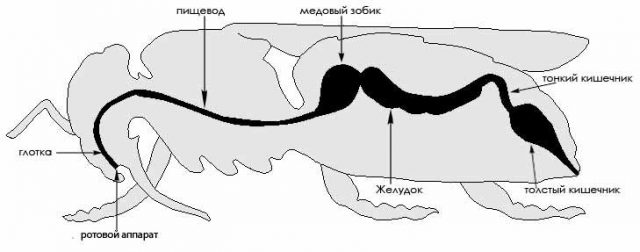 Im Magen wird ein Enzym produziert, durch das der Nektar in Honig und Fruktose zerlegt wird. Unter der Wirkung des Enzyms wird der Nektar vollständig abgebaut, die Insekten beginnen, reinen Nektar in die Zellen freizusetzen, die zur Speicherung von Honig bestimmt sind.
