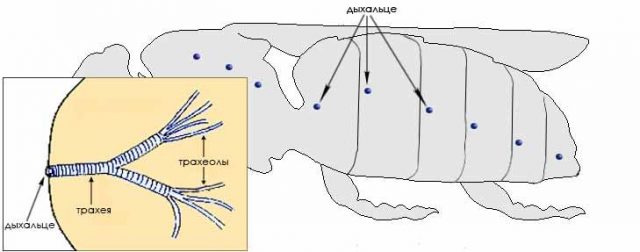 Luft tritt in den Körper des Insekts ein, welche Spirakel, die sich am Bauch befinden, und durch die Brustspirakel zurückgehen. An den Wänden der Spirakel befindet sich eine große Anzahl von Haaren, die eine Schutzfunktion erfüllen und das Eindringen von Staub verhindern.