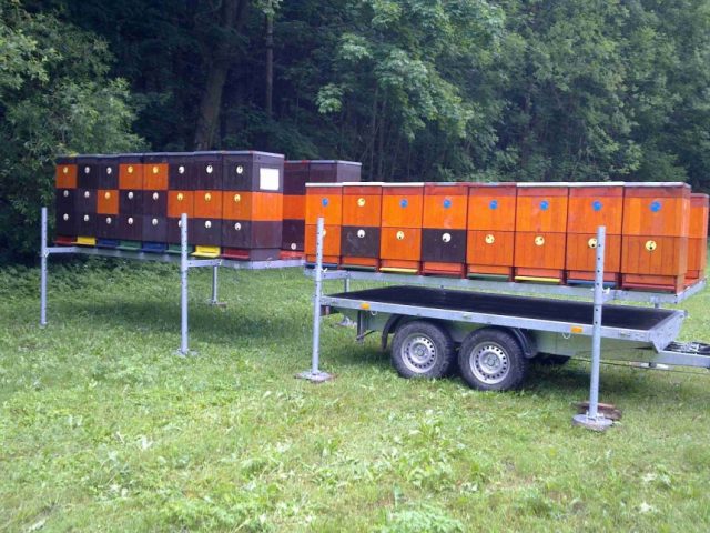 - Während des Transports ist das Schütteln auf der Bienenstockplattform im Vergleich zu einem kleinen Anhänger minimal. Bienen werden nicht gestresst, sie verhalten sich ruhig bei der Ankunft an einem neuen Ort.