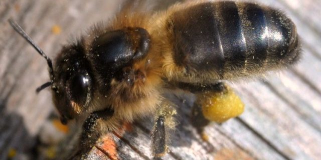 Die äußeren Merkmale der zentralrussischen Biene sind nur auf einem Nahaufnahmefoto zu sehen.