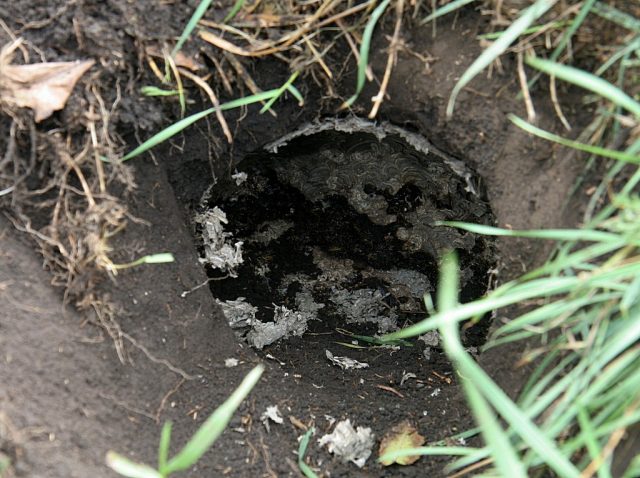 - Den Boden graben: Flache Höhlen können durch Lockerung des Bodens zerstört werden. Im Falle eines tief verborgenen Bienenstocks besteht ein hohes Risiko, dass Insekten überleben, die eine Person angreifen.