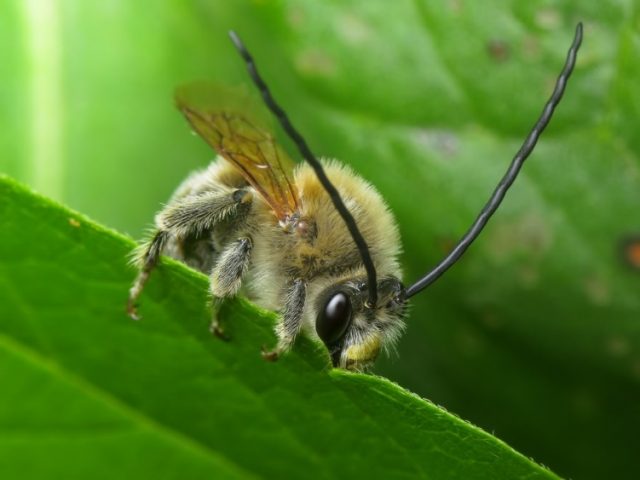 Die lang geflochtene Biene, die von Europa nach Kasachstan verbreitet wird, hat eine Besonderheit: Sie ist die Fähigkeit zweier Weibchen, gleichzeitig im Nest zu koexistieren. Individuen mittlerer Größe, grau-gelbe Farbe mit langen Antennen.
