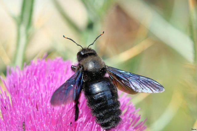 Die Zimmermannsbiene hat eine Besonderheit - es ist die Fähigkeit, laut zu summen. Das Insekt ist groß, hat blaue Flügel mit violetten Reflexen und dunkelblauen Augen. Bevorzugt einsame Existenz.