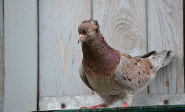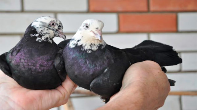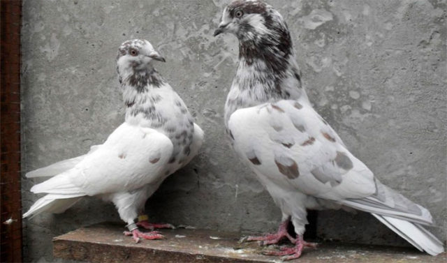 Spiegel-Baku-Tauben können fast jede Farbe haben, aber es gibt keine monochromatischen unter ihnen.Der Name dieser Art von Baku basiert auf dem Muster auf den Flügeln und dem Schwanz von Vögeln - spiegelsymmetrisch. Durch die Art des Gefieders sind die Spiegeltauben von Baku glatt, ohne Vorderlocken und "Augenbrauen".