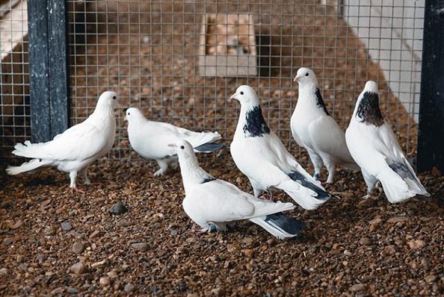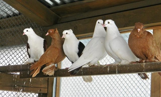 Auf dem Foto sind die Unterarten der Baku-Kampftaubenrasse dargestellt.