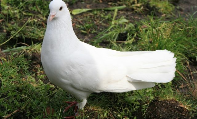 Die Konstitution der weißen Baku-Tauben ist anmutig, leicht länglich.