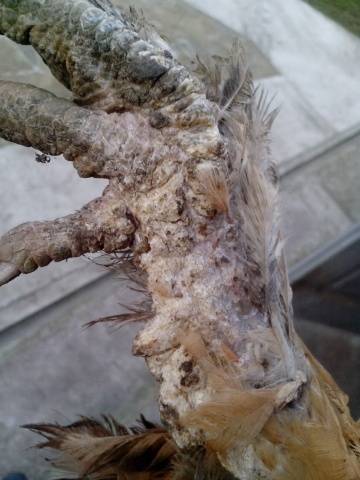 Tuberkulose... Bei Hühnern ist diese Krankheit normalerweise chronisch mit subtilen Symptomen. Lethargie, Erschöpfung werden beobachtet, bei Legehennen wird eine Abnahme der Eiproduktion beobachtet. Durchfall und Gelbfärbung der Schleimhäute sind ebenfalls möglich. Manchmal treten Lahmheit und Tumorbildungen auf den Pfotensohlen auf. Die Tuberkulose-Krankheit muss von subkutanen Zecken und traumatischen Formationen unterschieden werden.