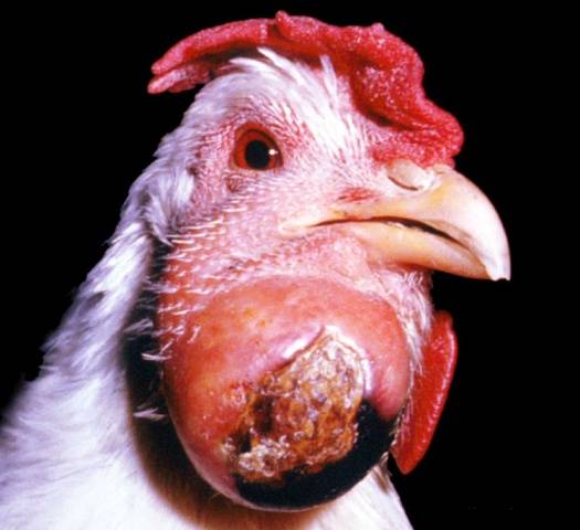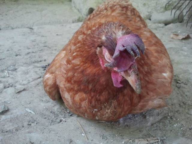 Pasteurellose... Hat 5 Formen des Krankheitsverlaufs mit leicht unterschiedlichen Symptomen. Wann hyperakute Form Krankheit, ein äußerlich gesundes Huhn stirbt plötzlich. Wann akuter Strom Krankheit, das auffälligste Zeichen für Pasteurellose sind ein blauer Kamm und Ohrringe. Darüber hinaus erleben Hühner: Apathie, eine zerzauste Henne sitzt mit gesenkten Flügeln, Keuchen beim Atmen, Atrophie der Brustmuskeln, Schaum aus dem Schnabel und Nasenöffnungen, Durst. Das Huhn stirbt in einem akuten Verlauf nach 3 Tagen.