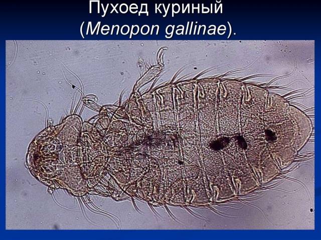 Der Federfresser ist ein Insekt, das groß genug ist, um auch mit bloßem Auge erkannt zu werden. Und manchmal spürt man, wie es auf der Hand kriecht. Wie jeder Hautparasit kann der Federfresser für Tiere leicht von Zecken und Flöhen entfernt werden. Tatsächlich ist dies ein Hühneranalogon von Flöhen und Läusen, die Säugetiere parasitieren.
