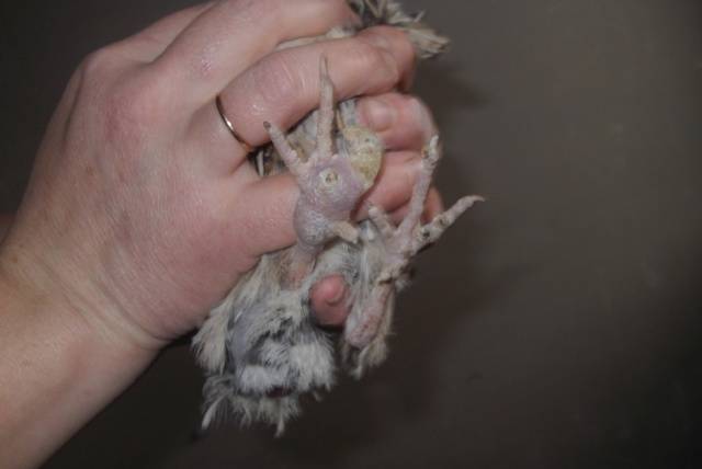 Knemidokoptose oder Juckmilbe können bei Hühnern unter den Schuppen auf ihren Pfoten parasitieren und Tumore verursachen, oder bei Federfollikeln, wodurch der Vogel juckt und die Feder herauszieht. Akarizide wirken gut dagegen, die in der Apotheke gekauft oder bei Ihrem Tierarzt abgefragt werden können.