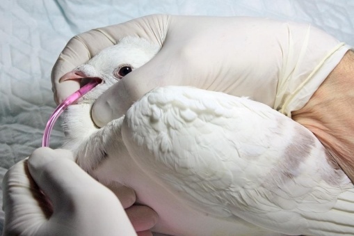 Das Waschen wird durchgeführt, bis der Inhalt des Kropfes in der Taube vollständig entfernt ist. Beim Waschen wird festgestellt, womit genau der Kropf verstopft ist.
