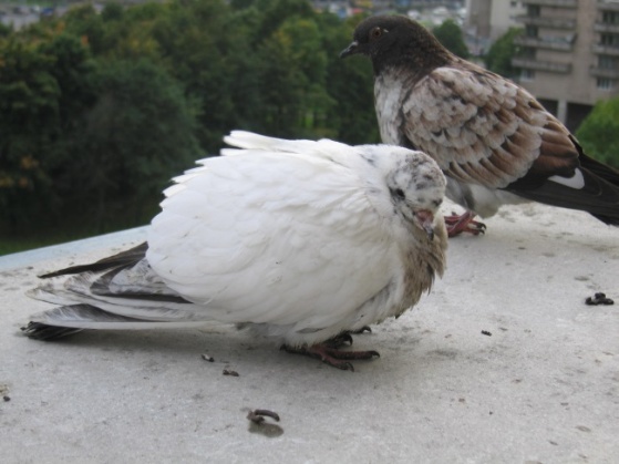 Die Art des Krankheitsverlaufs hängt vom Alter ab, in dem die Taube krank wurde: bis zu 20 Tage - akut, 20-60 / 90 (manchmal erwachsene Vögel) - subakut, über 90 Tage - chronisch.