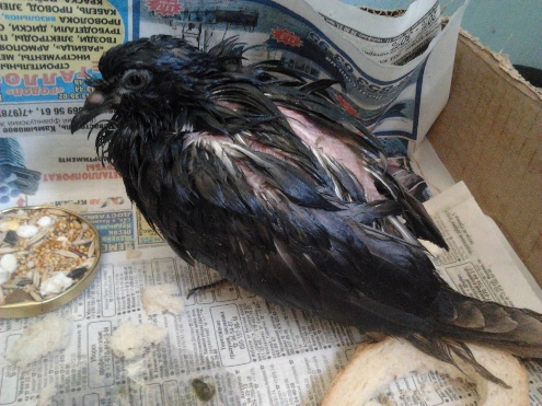 Wenn die Taube keinen freien Zugang zu Wasser hat, verstopft Trockenfutter die Ernte. Nach dem Trinken des Wassers wird das Essen nass und gelangt weiter in den Magen. Es ist keine spezielle Behandlung erforderlich.