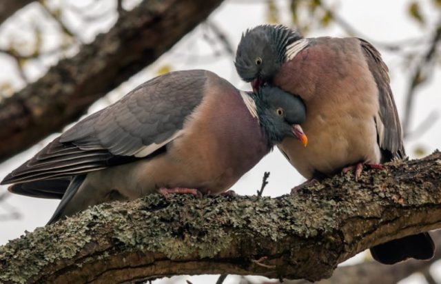 Tauben leben in Herden von mehreren Dutzend Vögeln. Bei der Migration strömen Herden von Hunderten von Köpfen.