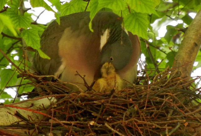 Nachdem die Küken der Taube geschlüpft sind, füttern die Eltern sie 1 Monat lang abwechselnd mit Futter. Die Quarkentladung vom Kropf von Holzschweinen füttert zuerst die Küken. Dann kommt der Moment, in dem die Küken zu anderem Futter wechseln. Normalerweise haben die Küken 1-2 Küken, die nach 40 Tagen lernen, neben ihren Eltern zu fliegen. Nachdem sie die Fertigkeit gemeistert haben, fliegen die Küken von ihrem Heimatnest weg und beginnen ein unabhängiges Leben in einer Herde.