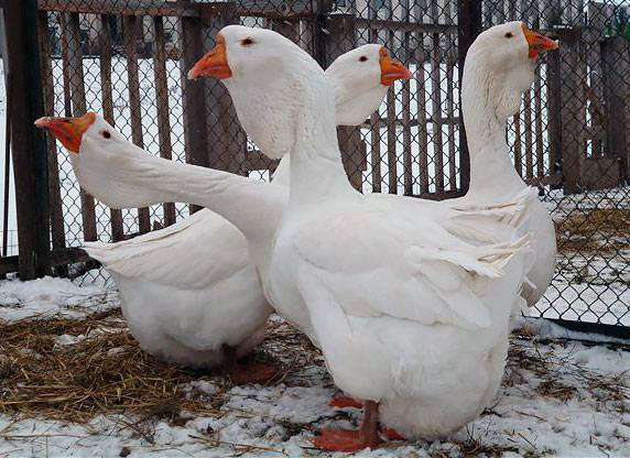 Unter den schweren Fleisch- und fettigen Gänserassen zeichnet sich die Gänserasse Kholmogory durch ihre Unprätentiösität gegenüber Haftbedingungen und eine friedliche Veranlagung aus. Natürlich relativ friedlich. Der Betrachter wird immer seine Familie beschützen, egal wie friedlich er sein mag.