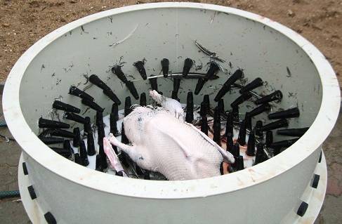 Der beste Weg, eine Ente schnell zu pflücken, besteht darin, sie in eine Federmaschine zu legen. Diese Maschine kostet jedoch so viel, dass die meisten Besitzer es vorziehen, sie von Hand zu handhaben.