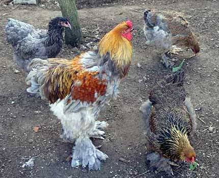 Nachteile der Brama-Rasse... Unzureichendes Gefieder am Mittelfuß, kahle Mittelzehe, flacher Körper (Heringeffekt: von der Seite gesehen sehr groß, von oben fast unsichtbar), zu lange Beine, weiße Lappen.