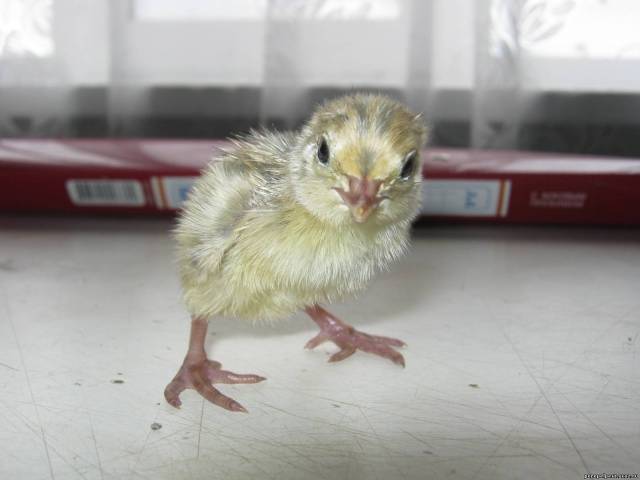 Marmorwachtelküken werden in der Regel an 17-18 Tagen geboren. Sie sind mit einem leichten Flaum bedeckt, Federn sind noch nicht vorhanden. Marmorwachteln wiegen 6 bis 8 Gramm. Ab der ersten Minute beginnen sie, den Raum aktiv zu erkunden. Bewundern Sie einfach den neugeborenen Quilt auf dem Foto!