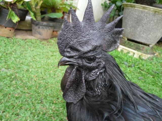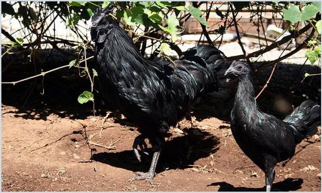 Schwarze Hühner der Rasse Ayam Chemani gehören auch in ihrer Heimat nicht zu den produktiven Gebieten. Und in Europa nehmen sie einen festen Platz unter den dekorativen Arten ein.