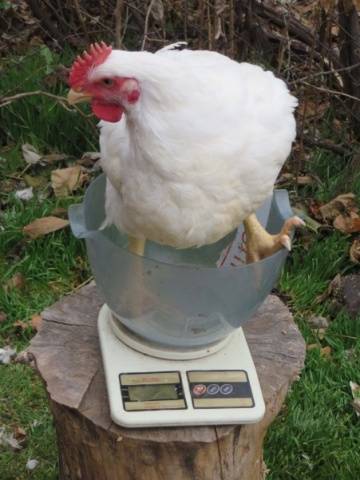 Das Ergebnis ist eine friedliche, aber sehr massive Hühnerrasse. Masthühner wiegen nach zwei Monaten 2 kg. Sie erreichen in sechs Lebensmonaten ein volles Gewicht von 4 kg.