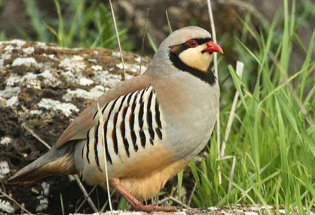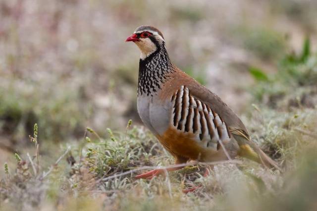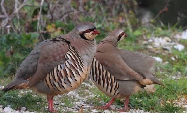 Auf der Iberischen Halbinsel lebt eine vierte Art von Rebhühnern: das rote Rebhuhn.