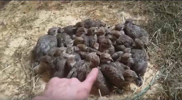 Wenn Sie möchten, dass die Küken zahm aufwachsen, werden sie von Hand gefüttert. In diesem Fall ist es bequemer, jungen Rebhühnern Insekten zu geben, nachdem zuvor die harten Teile entfernt wurden (Beine bei Heuschrecken, Elytra bei Käfern).