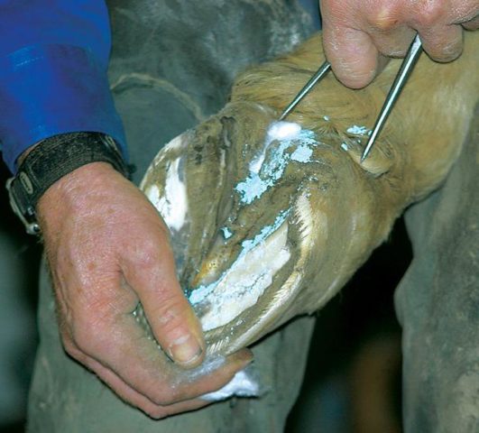 Topische antibakterielle Mittel wie Aerosolantibiotika haben vorteilhafte Wirkungen gezeigt. Sie werden nach der chemischen Reinigung von Hufen verwendet.