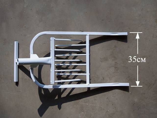 - Als nächstes machen Sie eine Stützstange. Hier können Sie Verstärkung verwenden, aber dann erhöht sich das Gewicht der Schaufel. Es ist besser, ein Vierkantrohr von mindestens 10 mm zu bevorzugen.