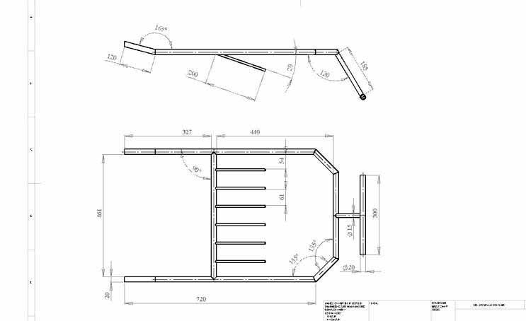 - Die Anschlagstange wird mit einem Lichtbogen aus Stahlblech mit einer Mindestdicke von 5 mm gebogen. Die Stelle der Falte wird zum Schneiden mit der Basis verschweißt, und die gegenüberliegenden beiden Enden werden dann an der Stange des stationären Rahmens befestigt.