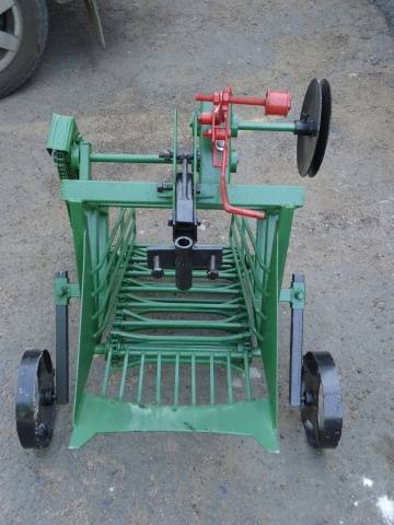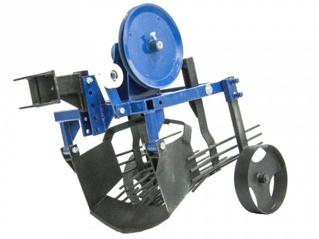 Es werden auch Fördervorrichtungen für handgeführte Traktoren verwendet. Sie sind nicht nur mit einem Sichtnetz ausgestattet, sondern auch mit einem Gürtel, mit dem Sie den Boden mit Kartoffeln effizienter abschütteln können. Oft wird ein Kartoffelgräber zum Selbermachen für einen handgeführten Traktor hergestellt, der ein einfaches Design aufweist.