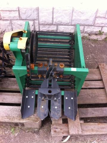- Oft werden handgeführte Mittelstrecken-Traktoren mit einem vibrierenden Kartoffelgräber eingesetzt. Sie sind für die meisten Motoblöcke geeignet und können für Geräte mit unterschiedlichen Kapazitäten verwendet werden.