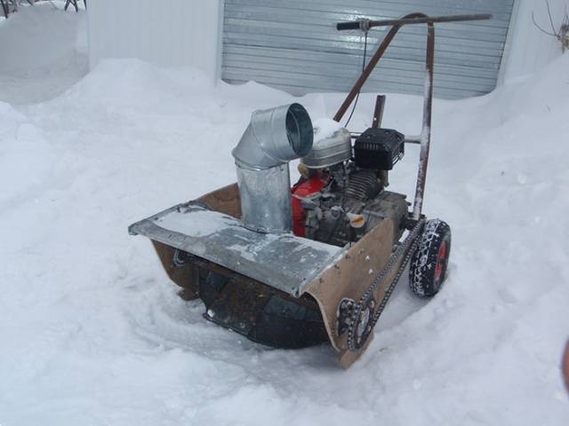 Sie können eine Schneefräse aus fast jedem Haushaltsgerät mit Motor zusammenbauen. Es ist nur wichtig, sich daran zu erinnern, dass Schnee Wasser ist. Elektrische hausgemachte Produkte bergen ein gewisses Risiko eines Stromschlags. Es ist am besten, Benzinmotoren den Vorzug zu geben.