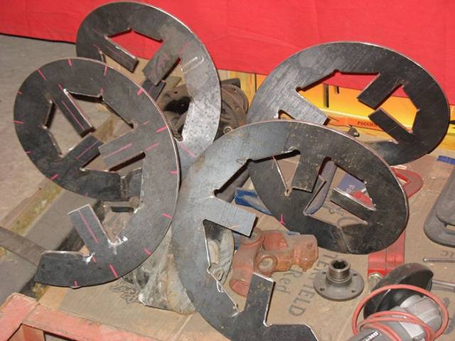 Die Montage einer rotierenden Schneefräse beginnt mit der Herstellung der Schnecke. Zuerst müssen Sie Material für Spiralmesser finden. Um vier Ringe mit einem Durchmesser von 28 cm zu erhalten, müssen Sie ein 1,5 cm dickes Förderband mit einer Dicke von 1 cm finden. Die Schneckenmesser sind ausgeschnitten, sodass Blütenblätter im Ring verbleiben. Sie werden zur Befestigung an der Arbeitswelle - dem Rotor - benötigt. Als Ergebnis sollten Sie ein leeres Schneckenmesser erhalten, wie auf dem abgebildeten Foto.
