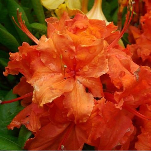 Die Blüten sind zahlreich, leuchtend orange, groß. Die Form der Blüten ist glockenförmig oder schalenförmig. Die Blütenstände bestehen aus 5-10 Blüten. Die Blüte dauert von Mitte Mai bis Anfang Juni. Winterhärtezone - 5.