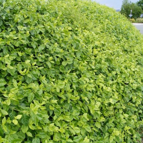 Die untergroße Sorte Coloratus gilt als die beste Sorte für den Anbau im Schatten von Bäumen. In der Sonne und ohne fühlt sich die Pflanze gleichermaßen wohl. Bildet eine mehrfache Anzahl von Trieben, die in einer Höhe von einem halben Meter eine durchgehende Abdeckung der Krone bilden. Klettern Sie einfach auf einen Baumstamm oder eine speziell installierte Stütze. Diese Euonymus-Sorte kann eine Höhe von 5 m erreichen. Erzeugt das Erscheinungsbild einer grünen festen Kaskade.