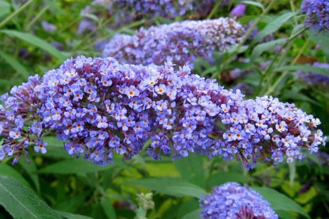 Die Buddleya-Sorte von David Adonis Blue besitzt einen ungewöhnlichen blau-lila Farbton von Blütenständen. Normalerweise wächst Buddleya niedriger als die meisten Sorten - nur bis zu 1,2-1,5 m. Die Blätter der Pflanze sind die gleichen wie bei anderen Sorten - lanzettlich mit einer dunkelgrünen Farbe oben und weißlich unten. Blütezeiten für die Sorte sind ebenfalls Standard - von Anfang Juli bis Ende September.