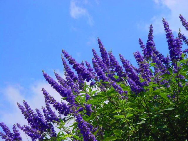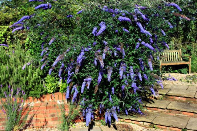 Diese Sorte ist auch als Purple Buddleya bekannt, da der Name leicht zu verstehen ist und vom hellvioletten Farbton dichter langer Blütenstände stammt. Auf dem Foto von David Santanas Kumpel können Sie sehen, dass die Krone eines niedrigen Strauchs, der durchschnittlich ein paar Meter erreicht, üppig und rund ist und aufrechte Äste mit herabhängenden abwechseln.