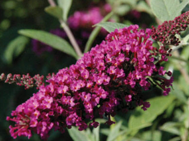 Die sehr kurze Magenta Munchkin Buddlea ist selten größer als 90 cm, zieht aber dank ihrer schönen Blütenstände die Aufmerksamkeit auf sich. Die Blüte dieser Sorte zeichnet sich durch einen dunklen und satten rötlich-violetten Farbton aus. Die Magenta-Budley-Sorte blüht von Juli bis Oktober mit ihren ersten Frösten.