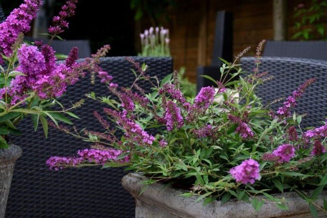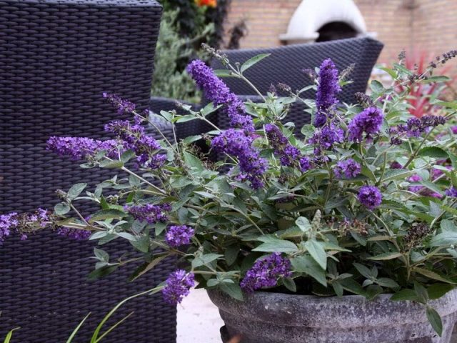 Free Pettite Tutti Frutti buddleya wird oft nicht nur in Blumenbeeten gepflanzt, sondern auch in Pflanzgefäßen und großen Töpfen auf Balkonen und Veranden. Es ist auch praktisch, eine Pflanze dieser Art im Haus zu halten, da der Miniaturstrauch für den Winter in Innenräumen entfernt werden kann. Die Pflanze ist sehr thermophil und verträgt keine kalten Temperaturen unter -20 ° C.