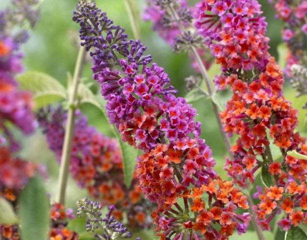Die Blüte der Sorte fällt auf den traditionellen Juli-September, die Blütenstände haben eine spitzenförmige Form, können nach oben gerichtet sein oder zum Boden hin abfallen. Buddleya David Tricolor ist eine ziemlich neue Sorte, hat aber gute Aussichten.